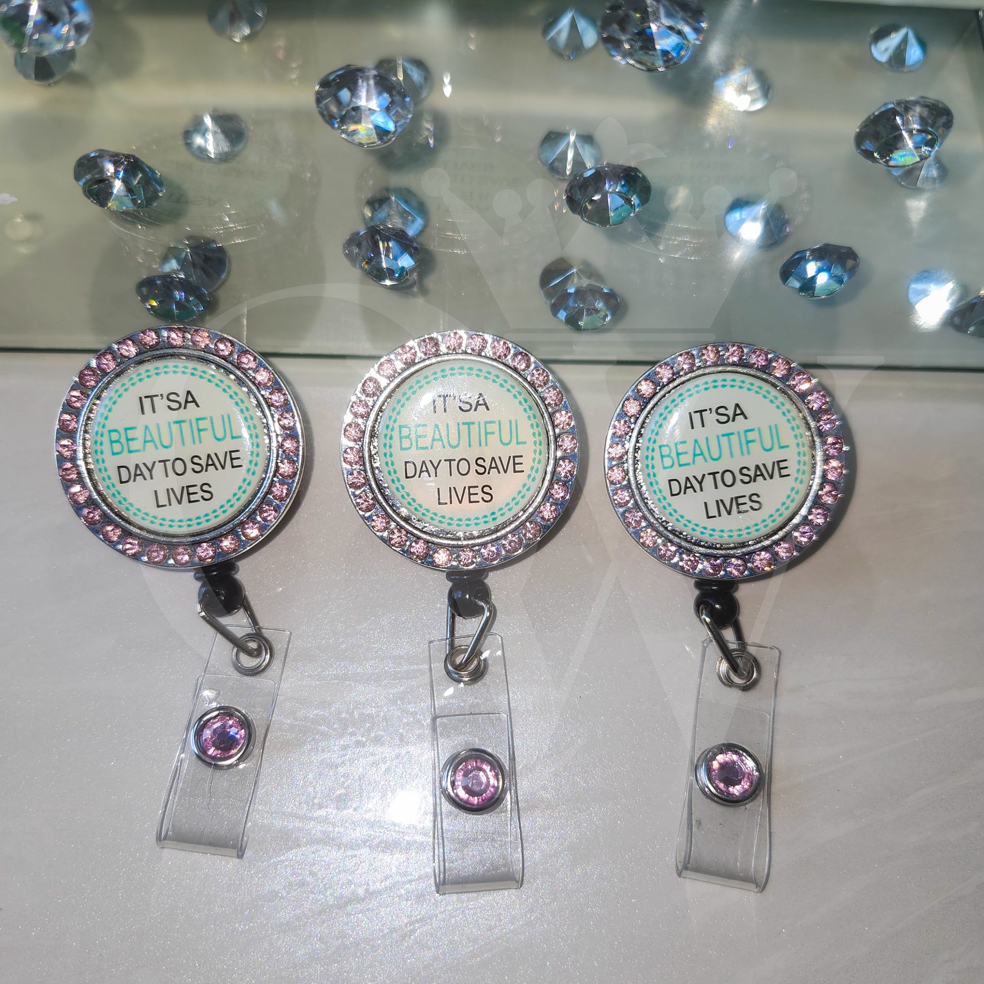 "It's a Beautiful Day to Save Lives" - Rhinestone Badge Reels