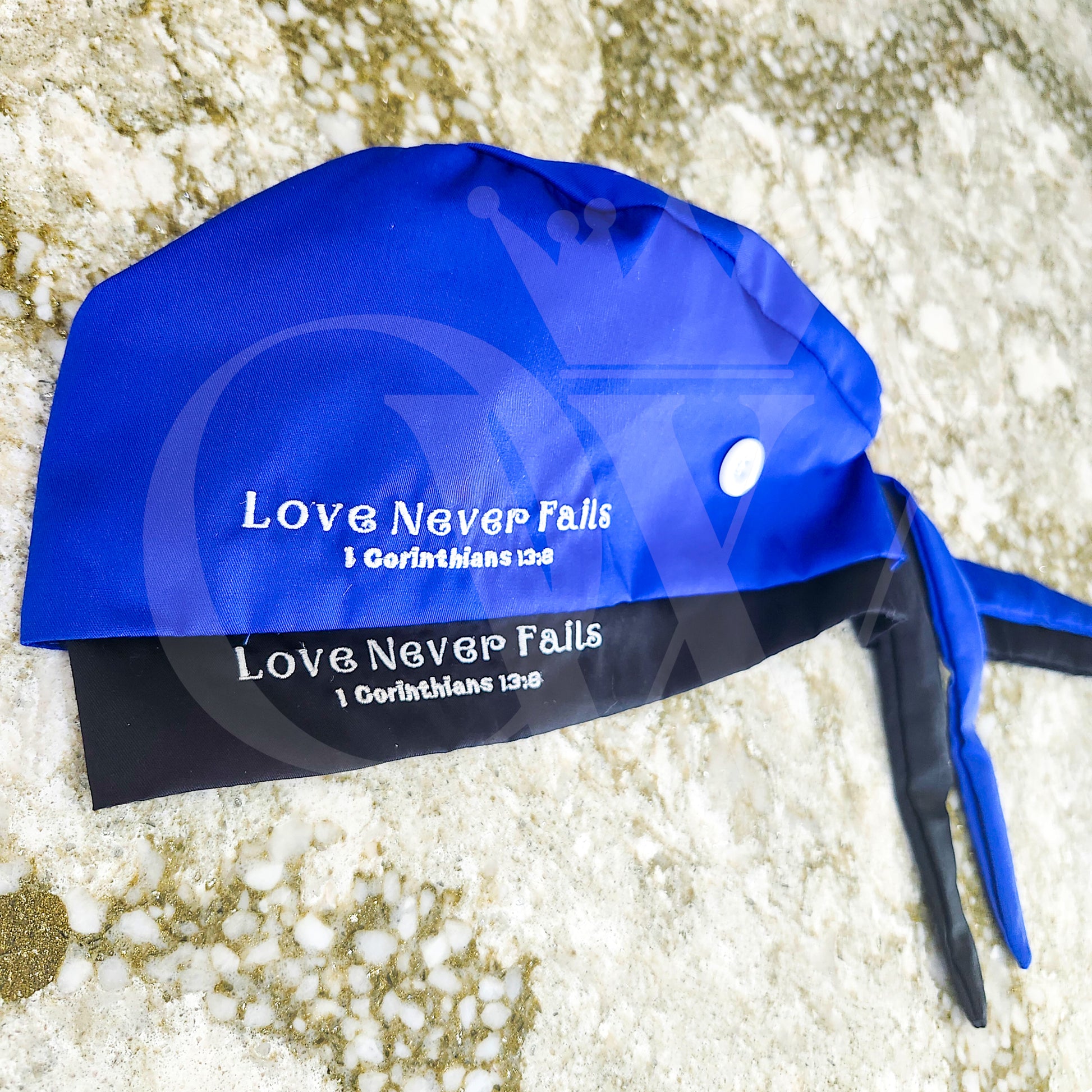 "Love Never Fails" Silk Lining Scrub Hats