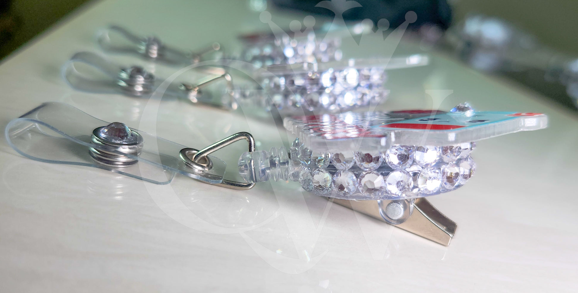 Silver rhinestone badge holder.