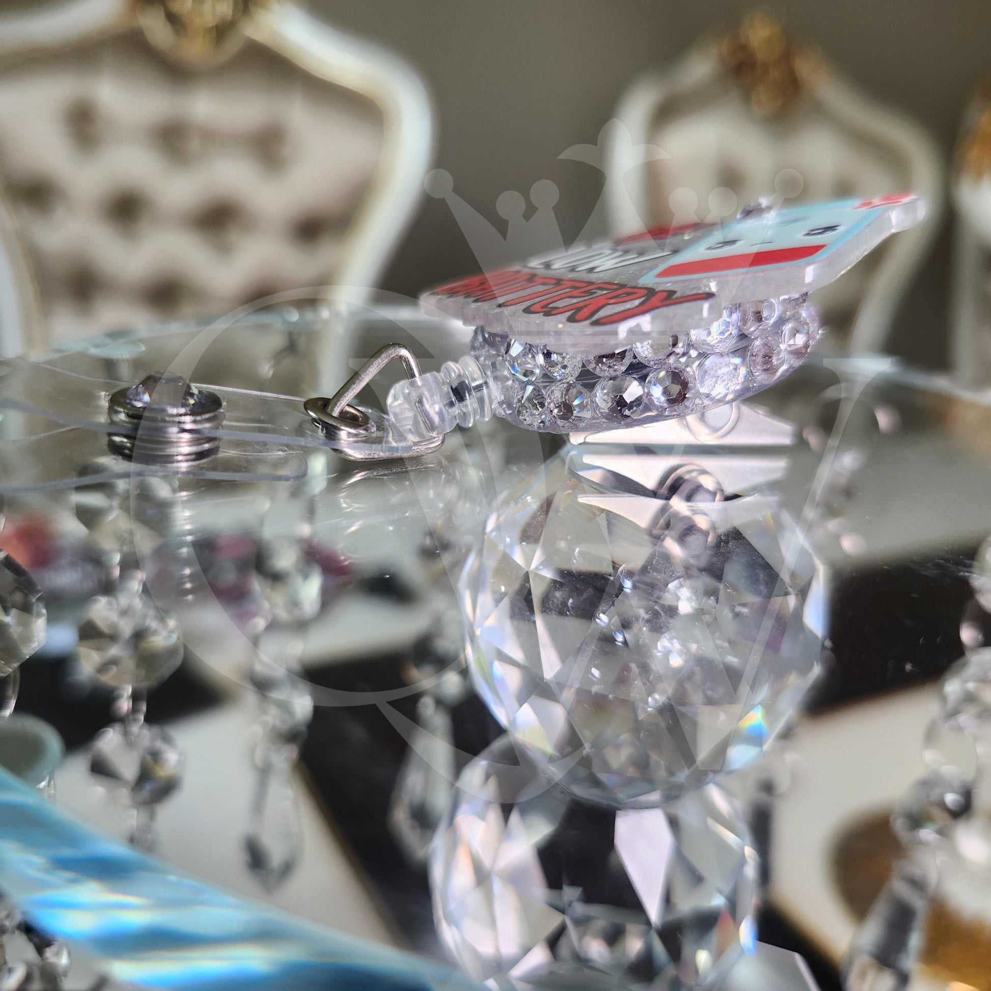 "Low Battery"- Rhinestone Badge Holder